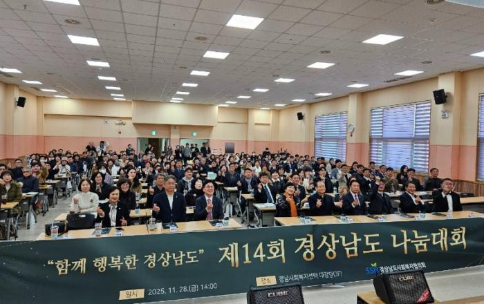 함께 행복한 경상남도‘제14회 경상남도 나눔대회’ 개최 - 28일, 경남사회복지센터에서 개최, 사회공헌 유공자 등 200여 명 참석- 나눔문화 확산 유공자․단체에 복지부장관․도지사 표창 등 수여, 노고 격려- 도내 30개 기관 보건복지부 지역사회공헌 인정기관으로 선정
