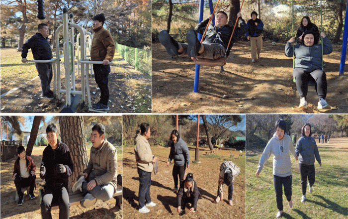 발달장애인들이 창원시 북면에 위치한 마법의 정원(도깨비숲)을 찾았다.가을의 정취를 느끼며 운동장을 달리며 공을 차고 운동을 함께하며 그네를 타며 즐거움을 만끽한다.떨어진 솔방울을 함께 주워 담으며 벤치에 앉아 휴식을 즐긴다.발달장애인주간활동센터 뜨레봄은 다양한 외부활동