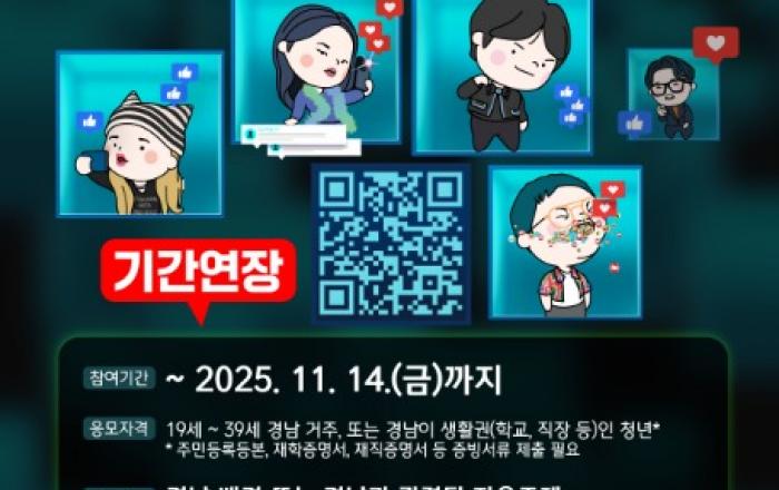 청년이 만드는 경남의 이야기,‘경남 청년 인플루언서 어워즈’ 참여기회 놓치지 마세요 - 19세 이상 39세 이하 경남 거주 또는 생활권 청년 대상- 경남 배경 또는 경남과 관련된 자유주제로 11월 14일까지 영상 접수 경남도가 더 많은 참여를 독려하고 우수 작품을 발굴