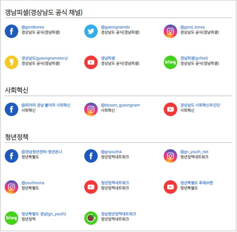 * 갱남피셜 : 경남도 공식 페이스북, 트위터, 인스타그램, 카카오스토리, 블로그, 유튜브