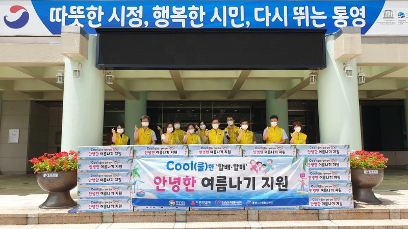 이날 자원봉사자들의 손으로 포장한 쿨(cool)키트는 읍면동 행정복지센터 및 경남지체장애인협회 통영시지회를 통해 소외계층 및 저소득 장애 어르신 100세대에 전달되었다.