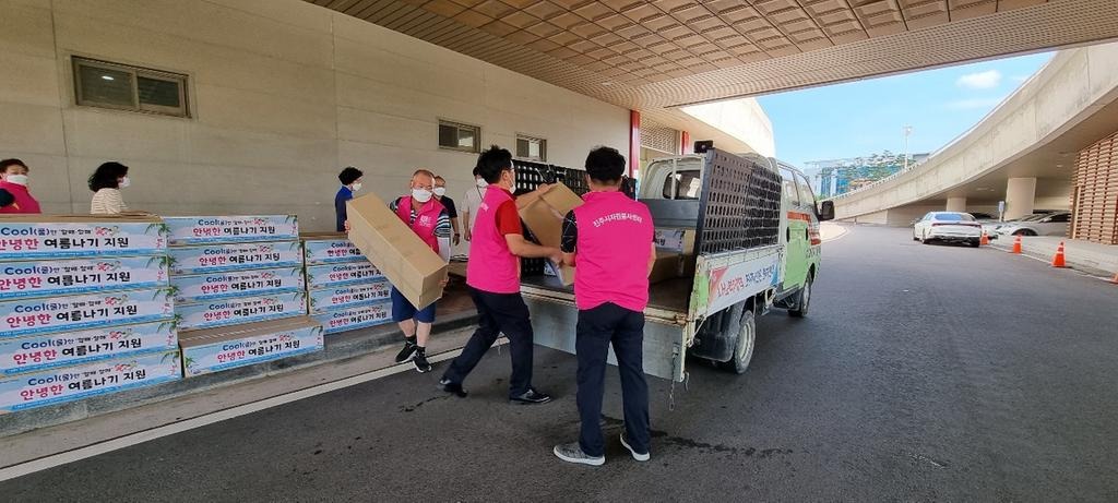 진주시자원봉사센터 관계자는 “코로나19 장기화로 어려움을 겪고 있는 취약계층 어르신들이 여름철 더위를 이겨내는데 쿨키트가 도움이 되었으면 한다”고 전했다.