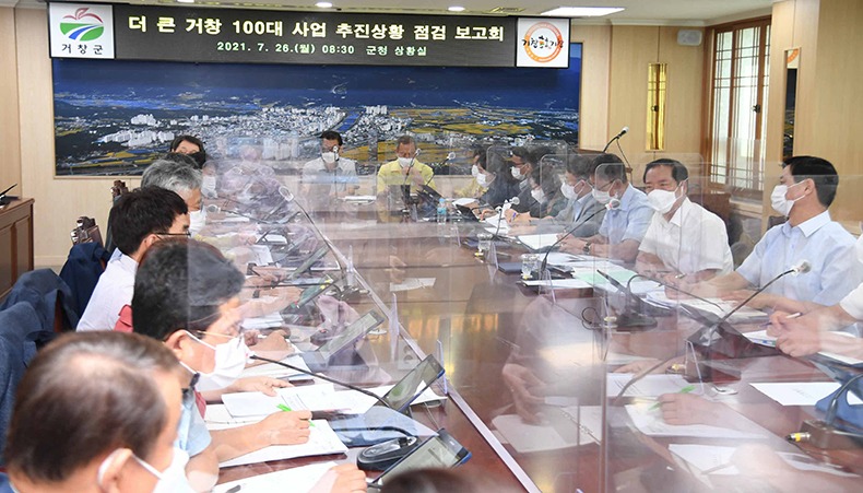 거창군은 26일 구인모 군수 주재로 군청 상황실에서 간부공무원이 참석한 가운데 더 큰 거창 100대 사업 추진상황 점검보고회를 개최했다.