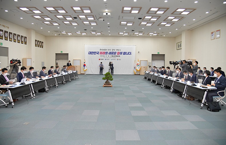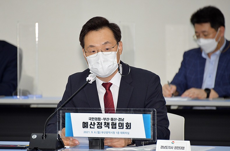 6일 오후 부산시청에서 부산시, 경남도, 울산시 순으로 개별 진행된 <국민의힘-부울경 예산정책협의회>에는 국민의힘 김기현 원내대표와 김도읍 정책위의장, 이만희 예산결산특별위원회 간사, 이달곤 경남도당 위원장, 강민국 원내대변인 등 지도부가 참석했으며, 경남도에서는 하병필 도지사 권한대행과 박종원 경제부지사를 비롯해 현안 국비사업 설명을 위해 소관 실국장들이 참석했다.
