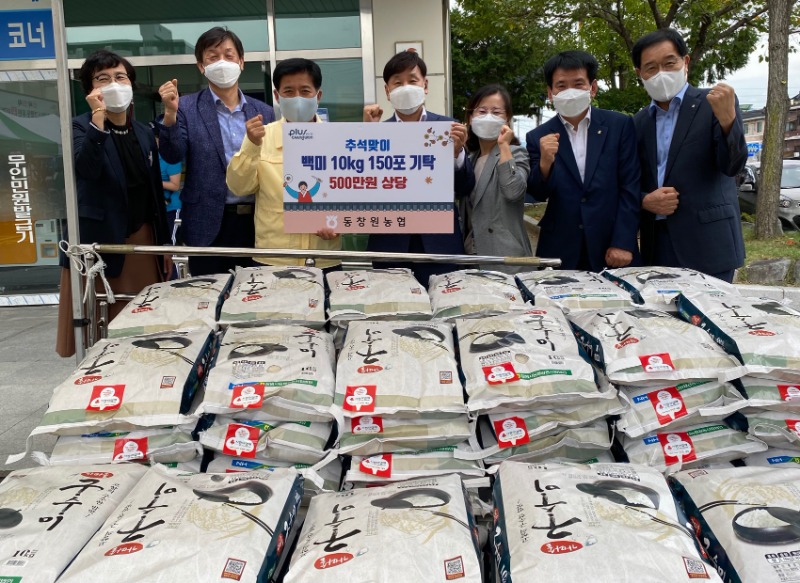 창원시 의창구(구청장 황규종)는 16일 동창원농협(조합장 황성보)에서 관내 취약계층에게 전달해 달라며 백미10kg 150포(500만 원 상당)를 기탁했다고 밝혔다. 이 날 전달된 백미는 의창구 관내 취약계층 150세대에 지원된다.