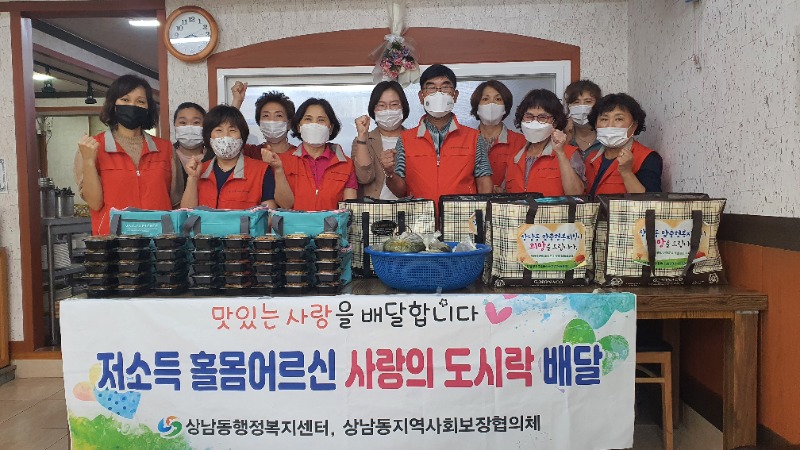 홀몸 어르신 도시락 사업은 관내 독거노인에게 도시락을 전달하면서 안부도 확인하는 일석이조의 사업으로 상남동 관내 독거노인들에게 뜨거운 반응을 얻고 있다.
