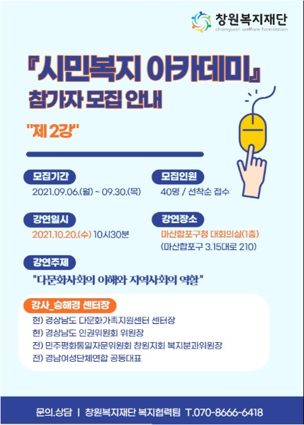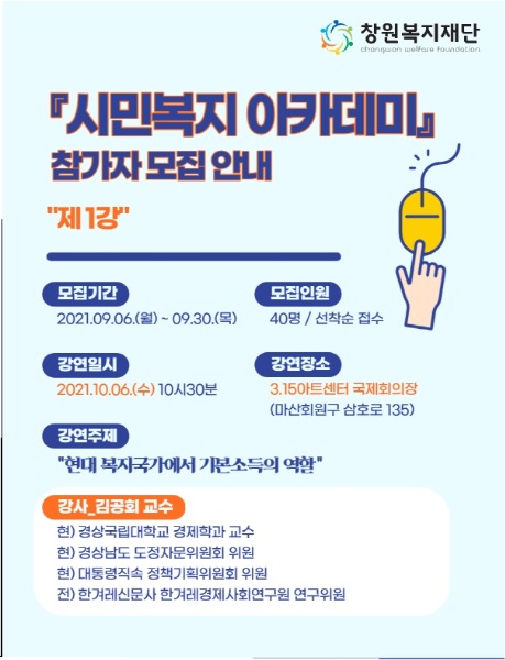창원복지재단 시민복지 아카데미 참여자 모집 김휘경 기자 발행 2021-09-27 10:54 Facebook Twitter band 네이버블로그 카카오스토리 카카오톡 글자작게 글자크게 <저작권자 ⓒ e-경남사회복지문화신문, 무단 전재 및 재배포 금지> 김휘경 기자 다른기사보기