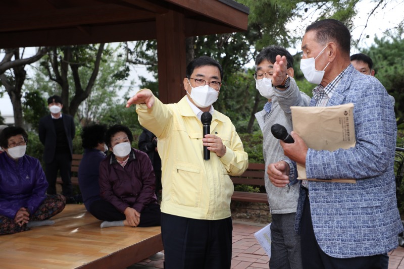 두 번째로 찾아간 석동 벽화공원에서 지역 현안과 생활불편사항 등 다양한 이야기를 경청하고 해결책을 토론했다. 특히, 석동~소사간 도로 개설로 발생된 유휴공간인 해뜰광장 정비 방안을 논의하고, 주민이 직접 참여하는 해뜰광장 법면 ‘저탄소 야생화 녹색정원 사업’을 격려했다.