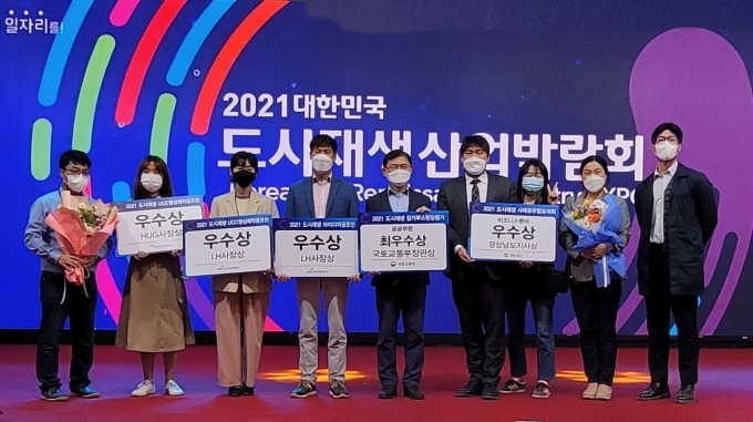 수상부문은 부스 현장평가 부문 최우수상과 우수사례 발표대회(비즈니스 부문) 우수상, 아이디어공모전, UCC 제작공모전 등 민간 부문 우수상 3건으로이다. 지난해 ‘2020 대한민국 도시재생 산업박람회’우수사례 발표대회 최우수상에 이은 쾌거다.
