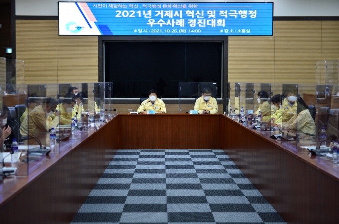 거제시(시장 변광용)는 지난 26일 ‘2021년 거제시 혁신 및 적극행정 우수사례 경진대회’를 개최하고 온라인 국민심사를 통해 우수사례 14건을 최종 선정했다.