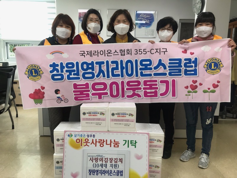창원영지라이온스클럽(회장 조미숙)에서는 9일 회원들이 추워지는 날씨 속에 어려운 이웃을 위해 직접 김장김치를 담았으며, 김장김치 10box를 성주동(동장 최영숙)에 기탁하였다.
