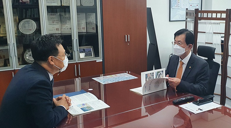 특히 지역경제의 어려움을 타개하기 위해서는 국회와 정부의 관심이 절대적으로 필요한 시기임을 설명하면서 예비타당성 조사가 마무리돼 가고 있는 진해신항 건설사업과 국립무형유산원 분원 유치, 천연물 안전지원센터 건립 등과 같은 크고 굵직한 주요 현안사업의 예산 반영 필요성을 재차 강조했다.