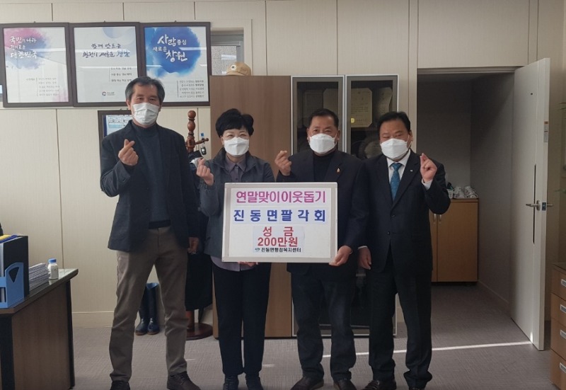 지난 12월 24일 진동면 팔각회에서 성금 200만원을 진동면행정복지센터에 기탁하였다.