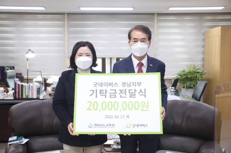 국제구호개발 비정부기구인 굿네이버스가 저소득가정 아동 지원을 위한 희망 장학금 2천만 원을 17일 경남교육청에 전달했다.