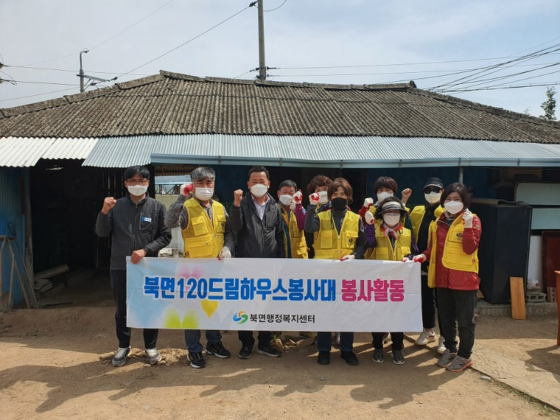 북면120드림하우스봉사대는 열악한 주거환경 속에서 생활하는 복지사각지대의 이웃을 발굴하여, 매월 청소, 집수리 등 맞춤형 봉사활동을 펼치는 단체이다