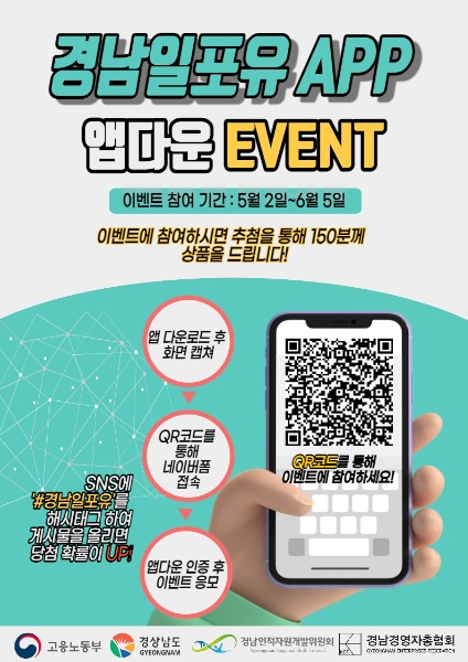 경상남도(도지사 권한대행 하병필)는 작년 10월 구축 완료한 ‘경남일포유’ 앱 사용의 활성화를 위해 5월 2일부터 6월 5일까지 앱(APP) 다운로드 이벤트를 진행한다고 밝혔다.