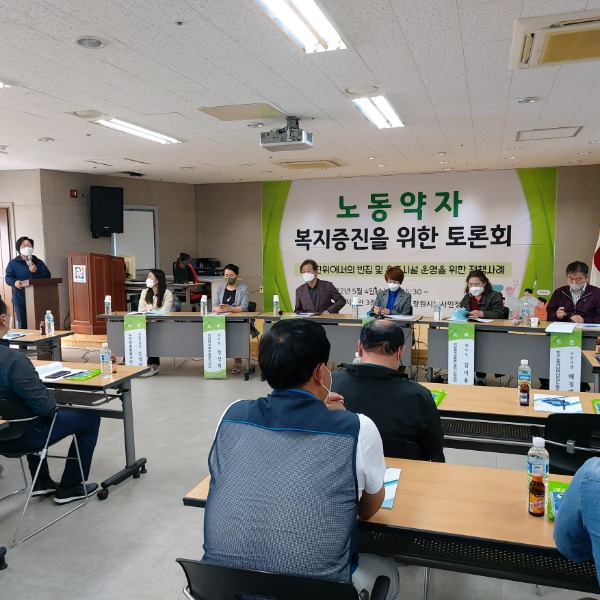 창원시노사민정협의회는 4일 노동복지관 대강당에서 ‘노동약자 복지증진을 위한 토론회를 개최했다. 이날 노사민정 전문가 및 관계자 약 30여명이 참석했으며, 이들은 이동노동자 등 노동약자들의 복지를 증진시키기 위한 방안에 대해 논의했다.