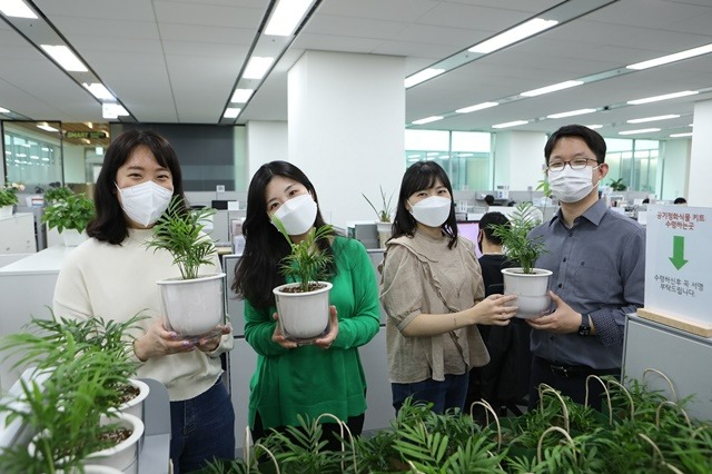 ▲ 최근 열린 비대면 봉사활동인 ‘공기정화 식물 기부’에 참여한 LG이노텍 직원들.