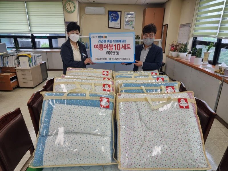 창원시 마산합포구(구청장 박명종)는 13일 ㈜이마트 마산점(점장 이상희)에서 “희망나눔 프로젝트” 업무협약의 일환으로 여름 이불 10채를 기탁 하였다고 밝혔다.