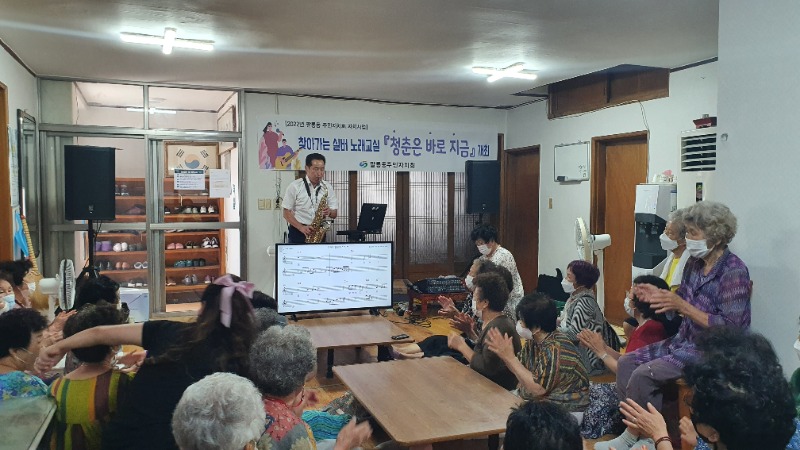 팔룡동주민자치회(회장 박창근)는 7월 12일 팔룡제1경로당을 찾아 어르신들의 코로나19로 우울감을 해소하고 삶의 활력과 건강한 노후 생활을 지원하고자 ‘찾아가는 실버 노래교실 「청춘은 바로 지금」’을 개최하였다.