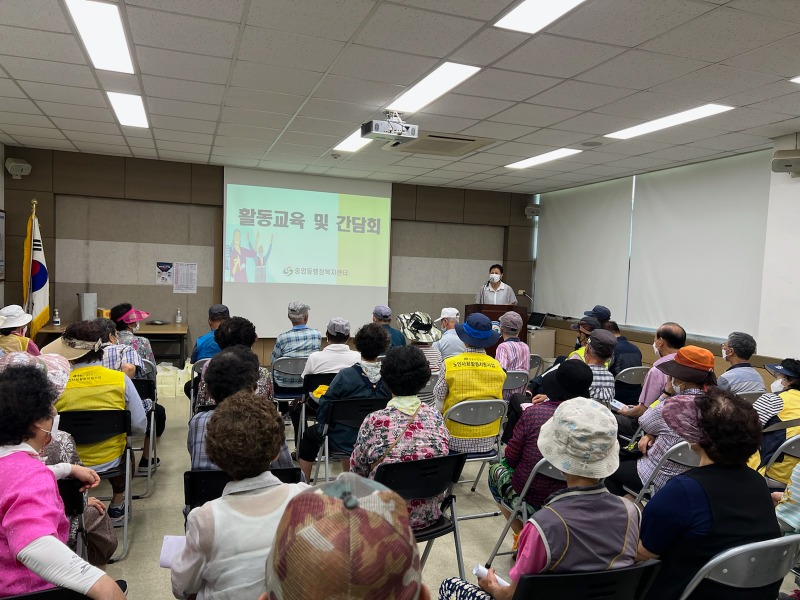 창원시 성산구 중앙동(동장 문종주)은 20일 오전 노인사회활동지원사업 참여자들을 대상으로 활동 교육 및 간담회를 실시하였다.