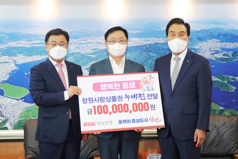 기탁식은 홍남표 창원특례시장•김지완 BNK금융지주 회장이 참석한 가운데 진행됐으며, 기탁된 창원사랑상품권은 경제적 위기를 겪고 있는 저소득 가정에 각 10만원씩 1000세대에 전달될 계획이다.