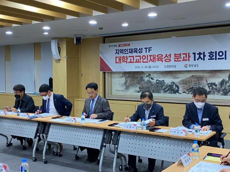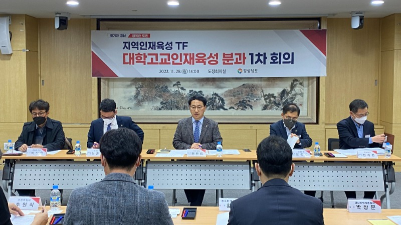 경상남도(도지사 박완수)는 28일 오후 도청 도정회의실에서 ‘지역인재육성을 위한 특별팀(TF) 대학고교 인재육성분과’ 1차 회의를 개최하고 인력육성 종합계획 수립을 위한 의견을 수렴했다.