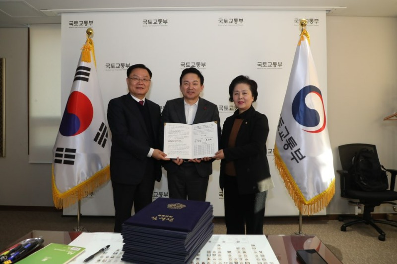 홍남표 창원특례시장과 김영선 국회의원, 국회의원 51명 서명 건의문 국토부 장관 전달