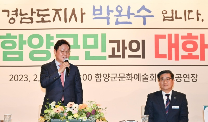 박완수 경남지사는 23일 함양군을 찾아 "교통·물류 중심지로 발전이 기대된다"고 말했다.