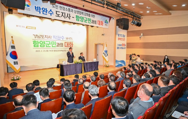 이날 함양군문화예술회관에서 열린 '함양군민과의 대화'에는 진병영 군수 등 군민 200여명이 참석했다.