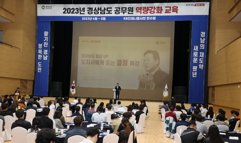 박완수 경상남도지사는 28일 KB인재니움 사천연수원에서 도청 공무원 200여 명이 참석한 ‘제2기 2023년 경상남도 공무원 역량강화 교육’에서 ‘도지사에게 듣는 열정 특강’을 펼쳤다.