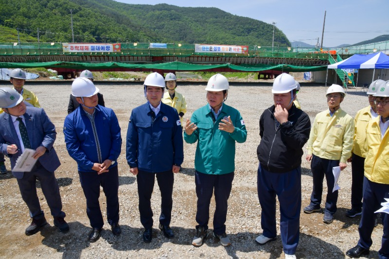 박 도지사는 교량 보도의 용접부위와 볼트 체결 상태, 바닥판 이상 유무를 점검하고, 교량 하부 구간에는 드론을 활용해 시설물 상태를 확인했다. 드론으로 촬영한 영상은 도 재난안전상황실에 실시간으로 송출되어 쌍방향으로 현장상황을 공유했다.