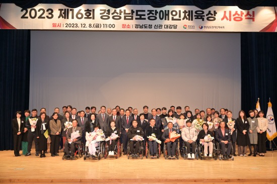 이날 시상식에는 박완수 경남도지사, 강용범 경남도의회 부의장 등을 비롯해 수상자와 장애체육인 500여 명이 참석해 한해를 마무리하는 시간을 가졌다.