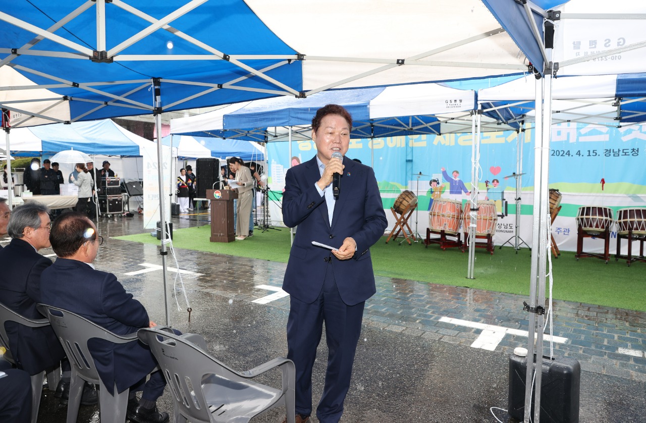 박완수 경남도지사가 15일 오전 도청 중앙현관 앞마당에서 경상남도 장애인 세상보기(휠체어리프트) 버스 첫 운행에 앞서 열린 기념식에 참석해, 사업의 성공을 기원하며 이같이 말했다.