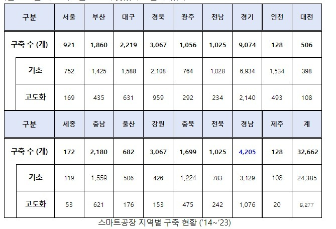 제조산업 디지털 전환을 위해서는 스마트공장 구축이 필수적이다. 그동안 경남도는 중기부의 스마트제조혁신 지원사업과 연계하여 2014~2023년까지 전체 4,205개사에 스마트공장을 도입했다. 이는 전국(3만2,662개사) 대비 12.8%로 전국 2번째로 많은 규모를 차지하고 있어, 제조산업의 디지털 전환을 위한 기반을 탄탄히 갖췄다고 할 수 있다.