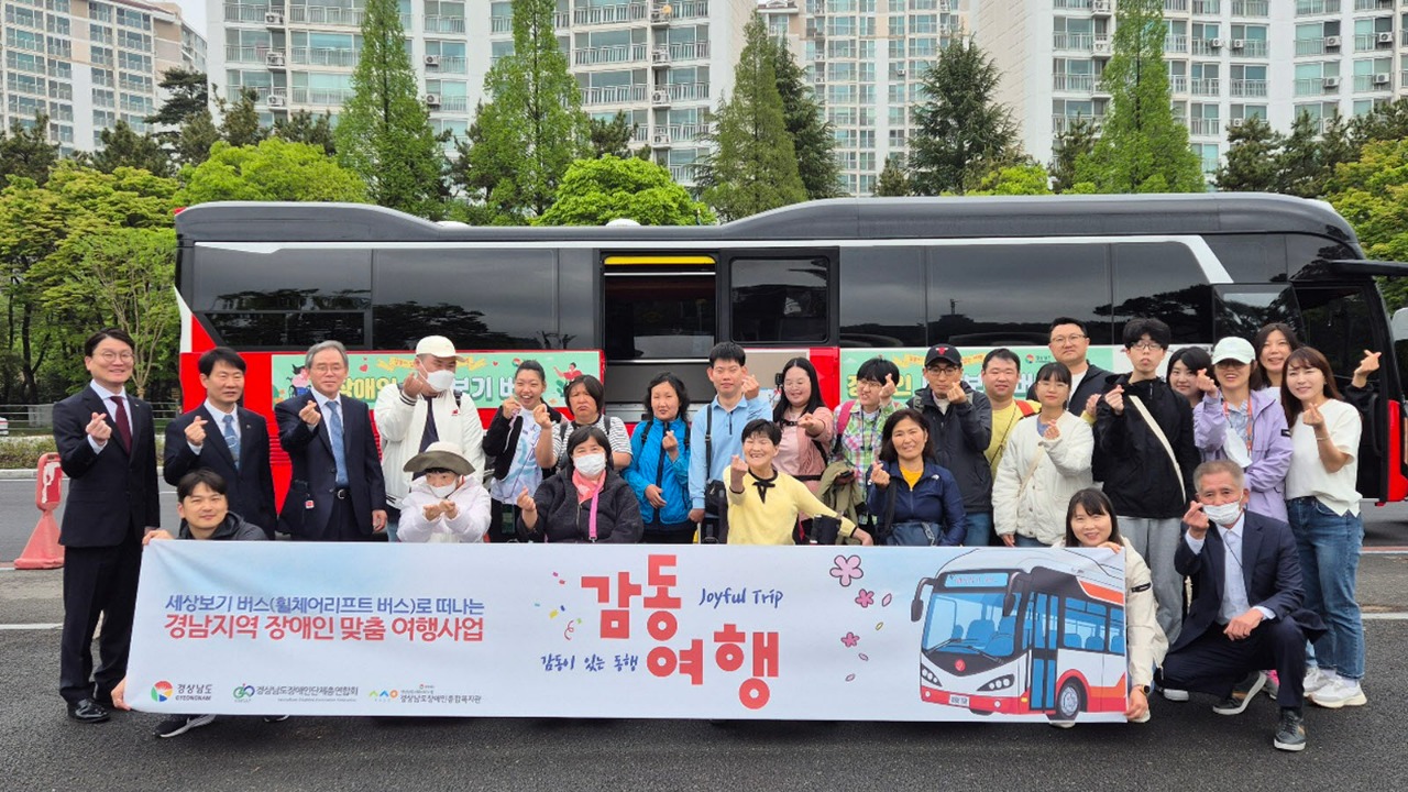 경상남도(도지사 박완수)와 (재)경남사회서비스원(경남장애인종합복지관)은 장애인 관광‧여가 활성화를 위한 ‘장애인 세상보기 사업’의 하나로 ‘장애인 세상보기 버스(휠체어리프트) 운영’ 사업을 본격적으로 추진한다.