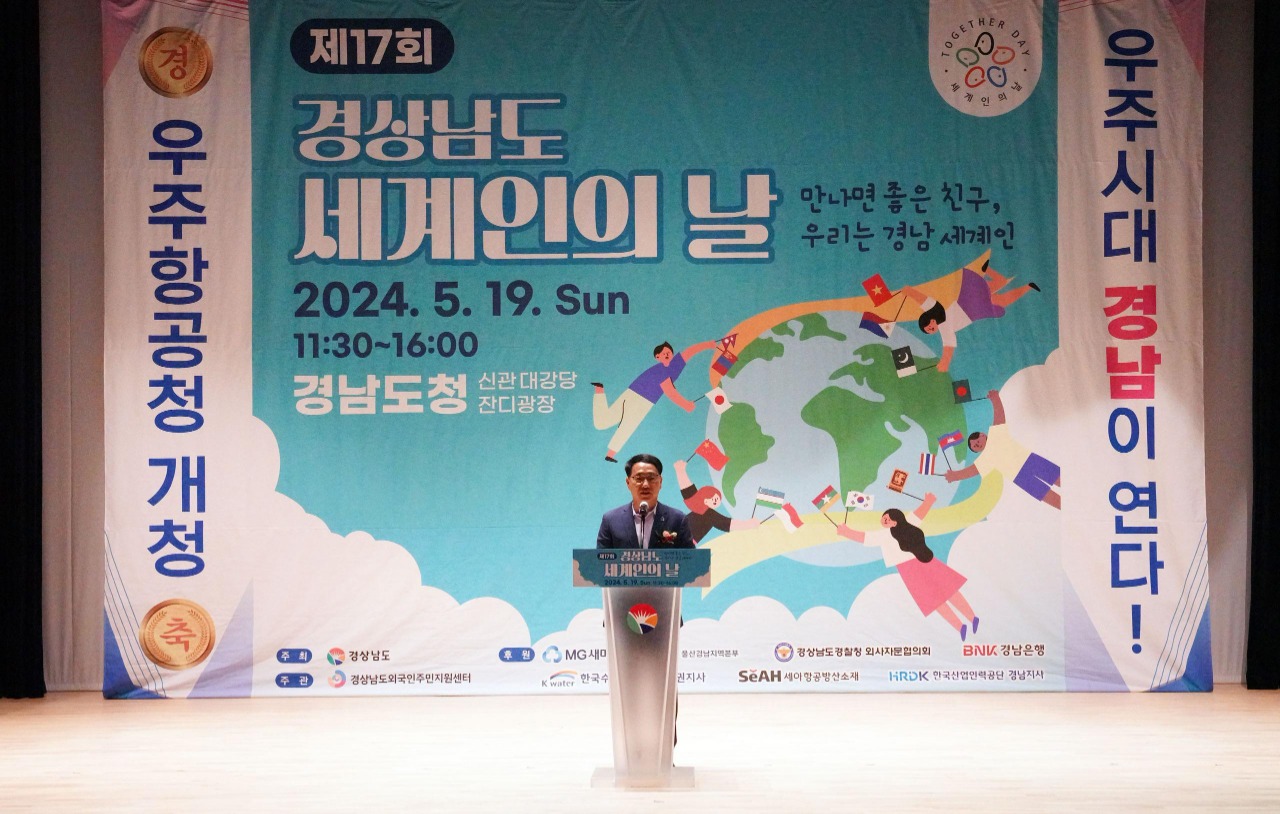 경상남도(도지사 박완수)는 ‘제17회 세계인의 날’(5.20.)을 맞이하여 19일 경남도청 대강당과 잔디광장에서 ‘2024년 경상남도 세계인의 날’ 기념행사를 경상남도외국인주민지원센터 주관으로 개최했다.