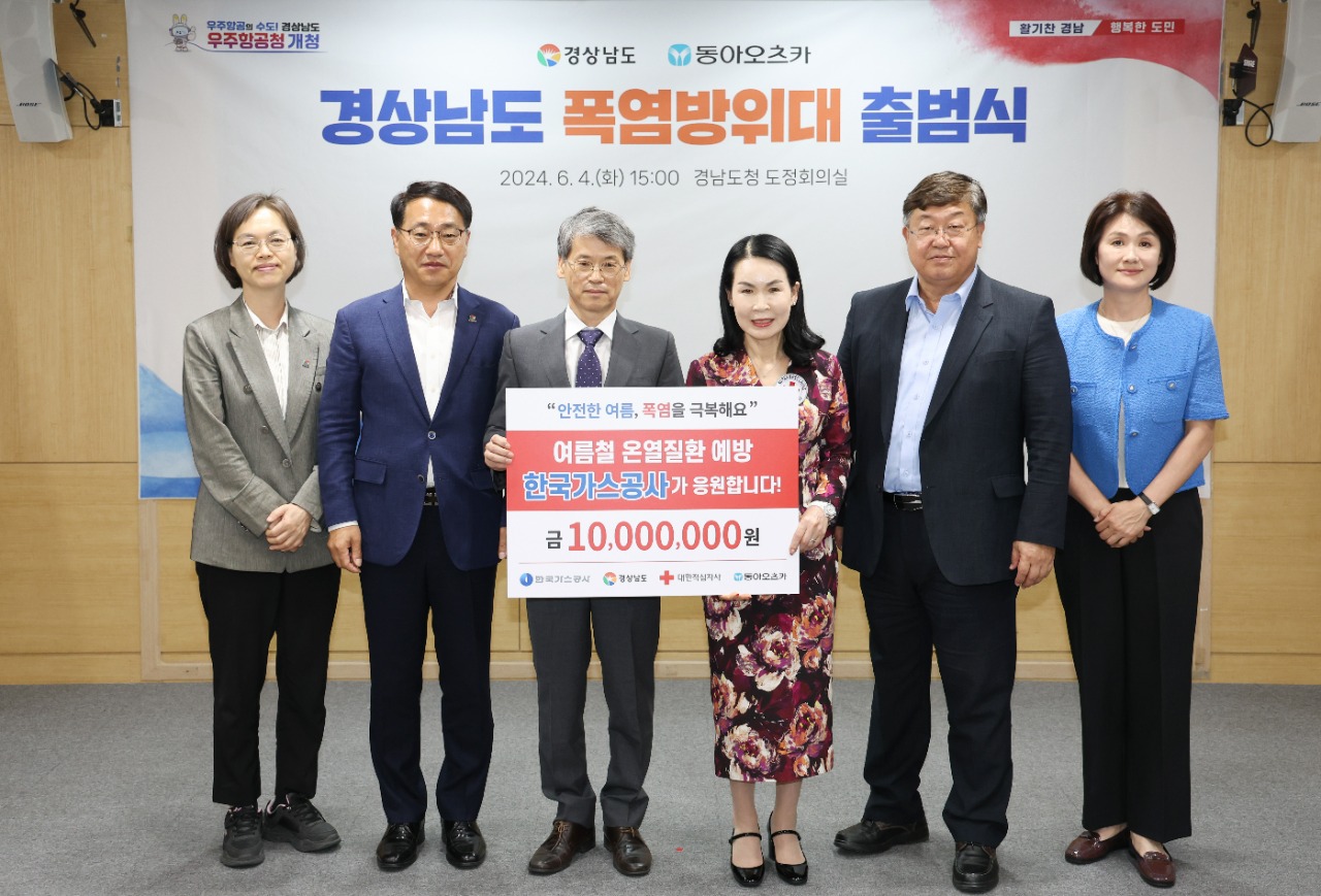 한국가스공사 부산경남지역본부(본부장 심명진)는 취약계층의 온열질환 예방을 위해, 이날 1천만 원을 대한적십자사 경남지사에 기탁하여 폭염재해 예방에 뜻을 모았다. 기탁금은 온열질환 예방을 위해 취약 근로자 물품 지원 등에 사용될 예정이다.