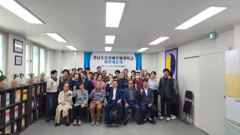 경남조은장애인평생학교는 2011년 12월 20일 최초로 시설 등록하여 13년간 머물렀던 곳을 떠나 좀 더 안락하고 편리한 시설로 이전하게 되었습니다. 새로운 시설로 이전하면서 많은 사람들이 와서 함께 축하해주고 맛있는 음식도 나누어 먹으며 개소식을 축하하는 시간을 가져보았습니다. 앞으로 좀 더 노력하고 발전하는 경남조은장애인평생학교가 되길 바래봅니다.
