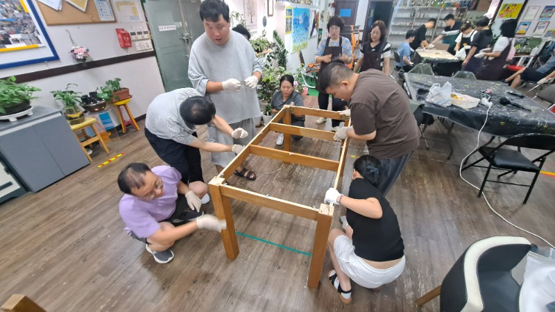 발달장애인들이 DIY체험 활동에 푹 빠져 있다.