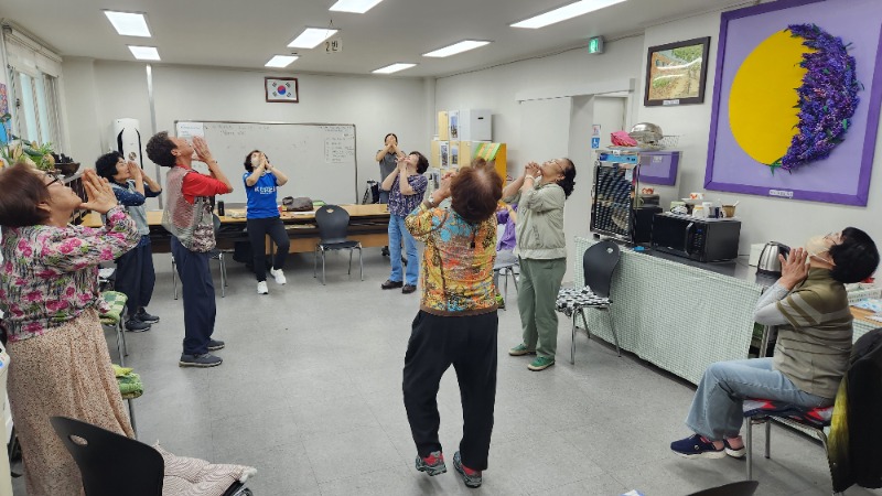 경남조은장애인평생학교 학생들은 1교시 한문 수업 후 2교시 밸런스워킹 시간에 다양한 밸런스 동작을 하고 밴드를 활용한 하체운동을 해봅니다. 하체강화를 위한 스쿼드 동작과 함께 팔을 굽혔다 폈다함으로써 팔 근육도 동시에 관리할수 있는 운동을 배워보고 연습해봅니다. 날씨가 좀 흐려서인지 다들 힘들어했지만 그러면서도 열심히 따라하시는 모습에 박수를 쳐주고 싶습니다. 오늘은 밴드를 활용하여 하체운동을 해보았습니다. 발목에 걸어서 한쪽씩 늘여보기도 하고 허벅지에 걸어서 스쿼트를 함으로써 하체근육을 키워보는 시간을 가져보았습니다. 오늘도 힘차게 운동하며 하루를 보내봅니다.