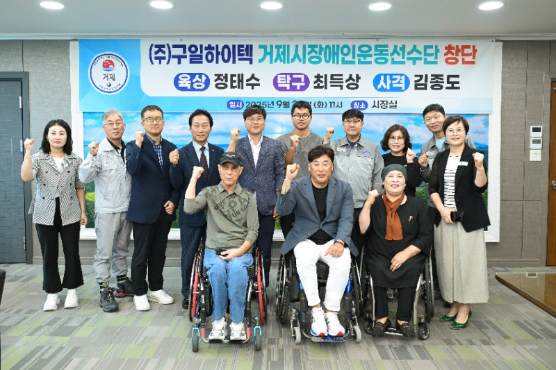 거제시는 23일 지역 장애인 운동선수와 관내 기업 대표 간에 장애인 운동선수 고용을 체결하고, ‘장애인운동선수단 창단식’을 진행했다고 밝혔다.