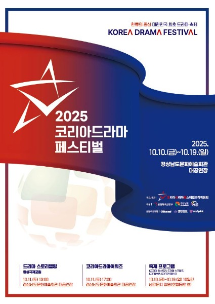 경상남도(도지사 박완수)는 10월 10일부터 19일까지 진주시 장대동 남강변과 경남문화예술회관일원에서 ‘2025 코리아드라마페스티벌(Korea Drama Festival, 이하 KDF)’이 개최된다고 밝혔다.