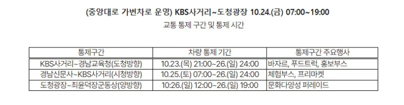 - 축제 3일간 ‘차없는거리’, KBS사거리~경남교육청 중앙대로 교통 통제