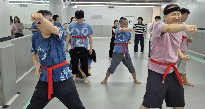발달장애인주간활동센터 뜨레봄은 태권도배우기 체험프로그램을 통해 운동을 함께 하며 발달장애인의 건강한 삶을 지원하고 있다.