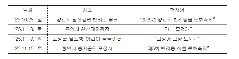 - 10월~11월 창원, 통영, 양산, 고성에서 반려동물 문화축제 열려