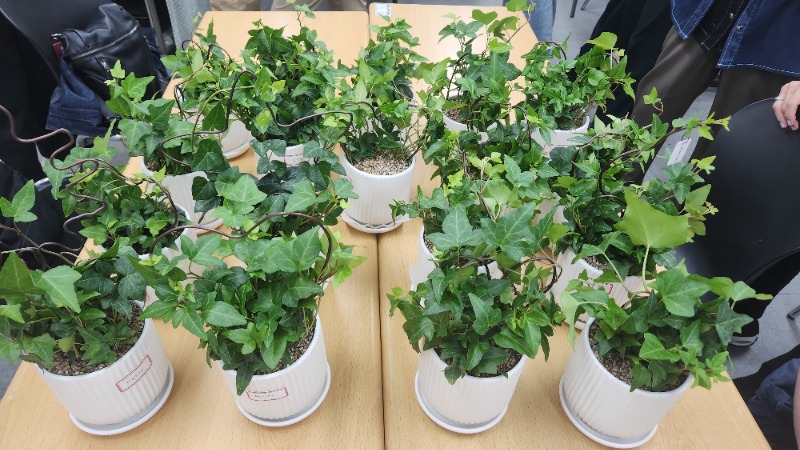 경남조은장애인평생학교 학생들은 1교시 국어 수업 후 2교시 토탈공예 시간에 분재철사를 이용하여 하트, 별, 동그라미 등 내가 원하는 모양을 만들어보았습니다. 분재철사를 이용해 모양을 만들고 난 후 화분에 잘 고정시켜봅니다. 화분 맨 밑에 물이 빠지는 구멍을 넣고 조형물을 끼워 고정한 후 아이비를 이쁘게 심어주었습니다. 그 위에 마사와 용토를 넣고 마무리해주었더니 멋진 아이비 화분이 완성되었네요. 아이비는 햇빛을 많이 받지 않는게 좋으며 욕실에 두어도 좋은 식물이라고 합니다. 물을 주는 주기로는 겨울철 일주일에 한번, 여름철 3일에 한번정도 주면 된다고 합니다. 아이비는 물을 좋아하는 식물이라 흙을 꾹꾹 눌러보았을때 매마른 느낌이 든다면 물을 듬뿍 주라고 합니다. 가정에 가지고 가셔서 이쁘게 아이비 키우면서 힐링하시길 바랍니다.