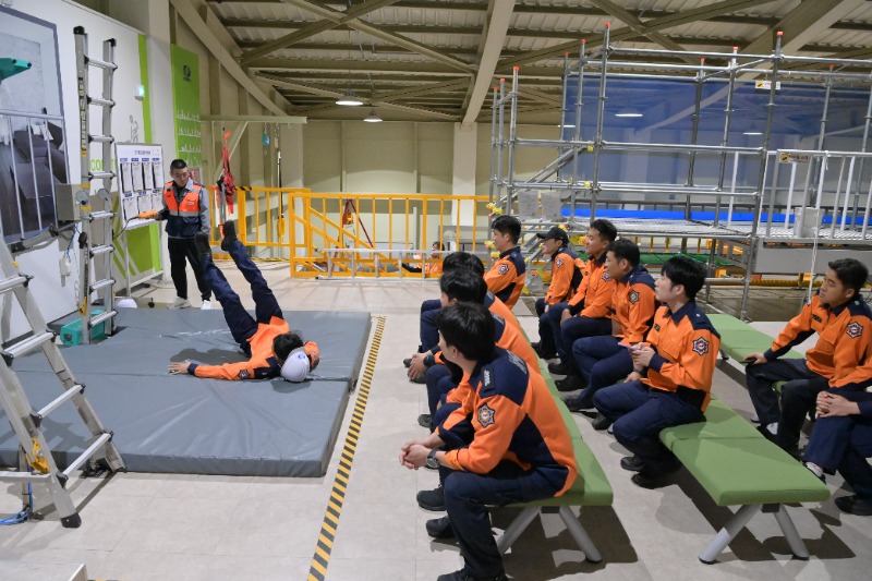 특히, 한국남부발전(주) 하동빛드림본부 내 화재 및 긴급구조 대응력 강화를 위해 발전소 터빈동(터빈, 발전기, 주제어실 등), 석회석 저장시설(밀폐구역), 1호기 보일러 건물(전망대), 연료유 저장탱크, 발전 시뮬레이터실 등의 주요시설의 현장 구조 환경을 확인하고 안전문화교육관에서 추락 VR체험 등 안전교육을 병행했다.