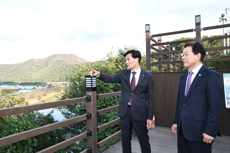 한편, 행사 후 박 지사는 용두산공원을 방문해 도시생태 복원사업 추진 현황을 점검했다. 용두산공원은 수변산책로와 달팽이 산책로 등 도심 속 자연을 느낄 수 있는 공간으로 조성돼 시민과 관광객에게 여유와 힐링의 장소로 자리 잡고 있다.