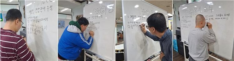 이날 회의에서는 시원한 겨울철 건강관리법과 하고 싶은 이야기를 함께 나누고 칠판에 써보며 새로 오신 선생님의소개로 인사를 나누었다.